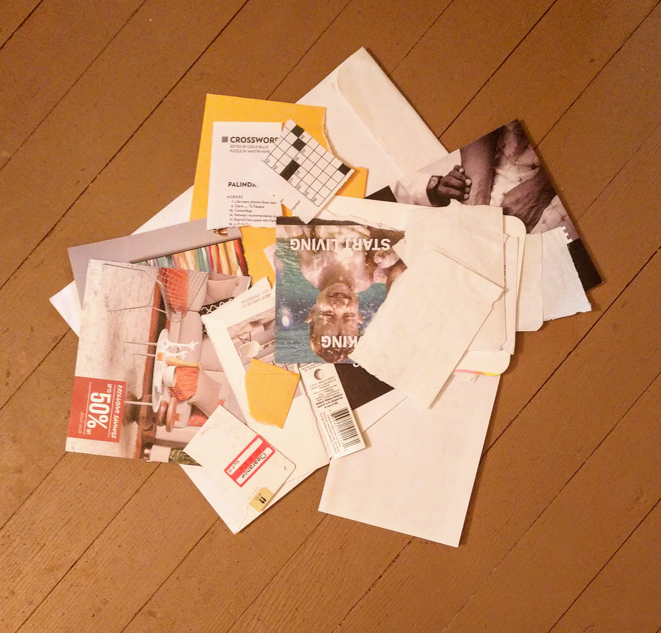 Luckily, after 1 1/2 piles, tucked in between were items for letting go: 7 magazines, a few newspapers, some event flyers, a plethora of local advertisements, recycling/trash bits and pieces, an empty card holder and a historic baseball postcard I’ll mail to my 90 year old uncle ~ he loves anything sports! So, by my math, that is 13! I’m exhausted!