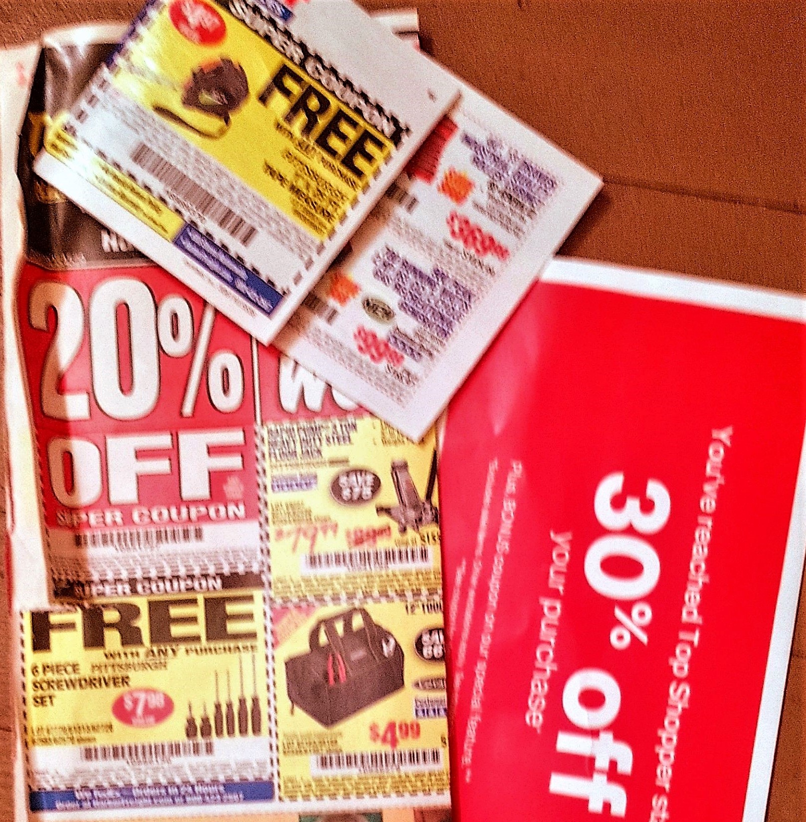 First, with what hurts the most, 3 missed opportunities ~ a free tape measure, free set of screwdrivers and 30% off an entire purchase which I could have used for new First Aid Supplies (had I found it a short time ago). Alas…. a cost of clutter…