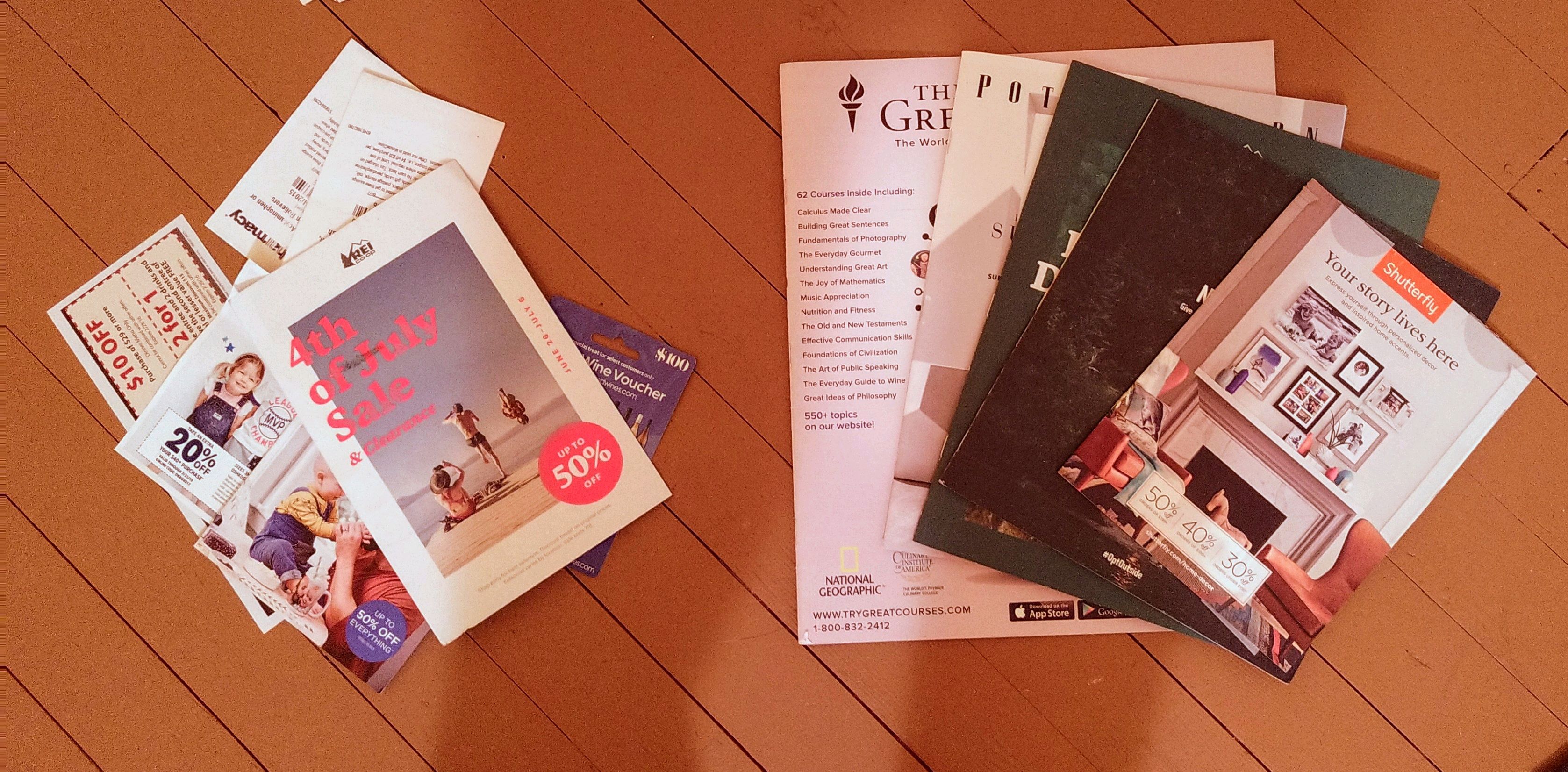 Followed by various bits of recycling/trash ~ piles of outdated coupons/sales flyers… 5 catalogs… old losing lottery tickets and the piece de resistance… more expired supplements! And we come full circle! (roll eyes here)